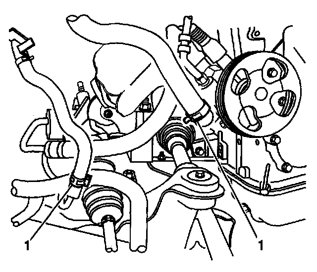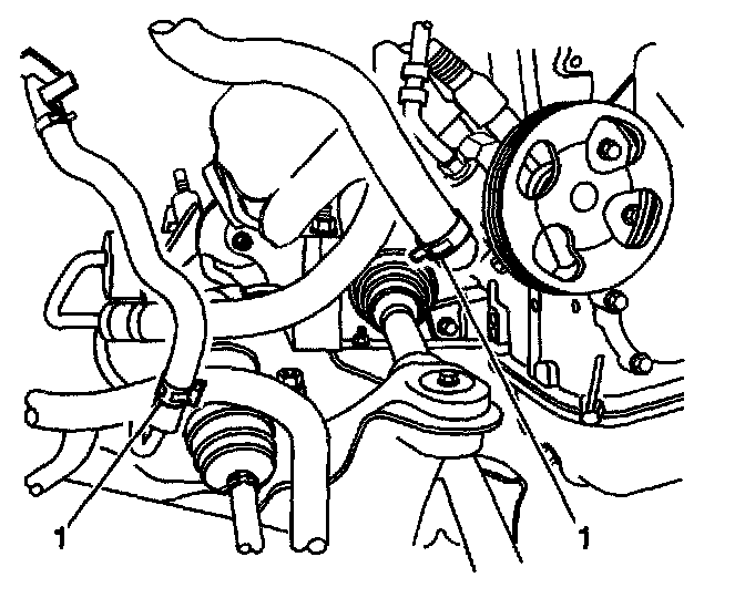 39. Place a drain pan, then disconnect the power steering lines (1) and drain the power steering system.