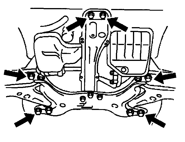 ^ Tighten the crossmember rear bolts to 39 Nm (29 ft. lbs.).