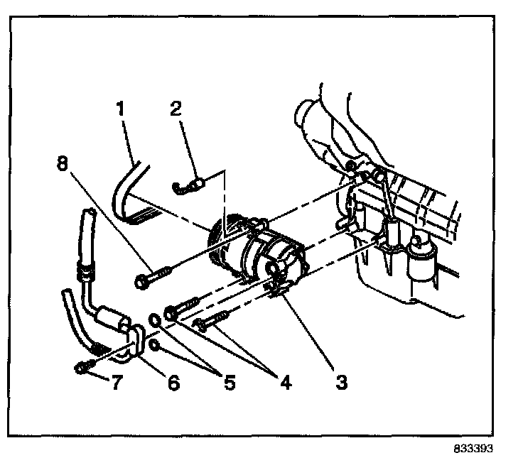 8. Install the compressor upper mounting bolt (8).
