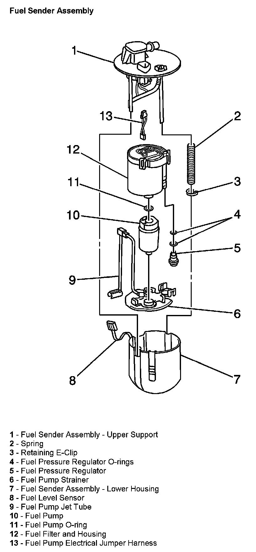 - The fuel sender assembly (7). The fuel sender assembly pumps fuel to the engine from the fuel tank.