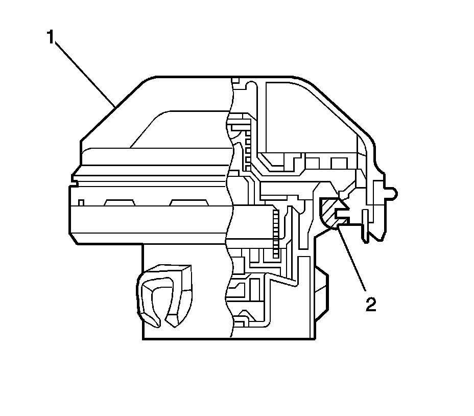The fuel level sensor is part of the fuel sender assembly. The fuel level sensor (1) consists of a float (2), a float arm, and a variable resistor (1). The fuel level is measured by the position of the float in the fuel tank, and is indicated by a gauge in the instrument panel cluster (IPC) assembly. When the fuel level changes, the float position changes. The change in the float position increases or decreases the resistance reading of the variable resistor. The change in the resistance causes the position of the fuel gauge pointer to change.