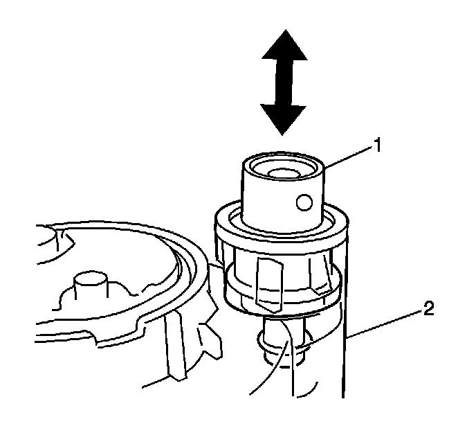 8. Remove the fuel pressure regulator (1) from the fuel filter assembly (2).