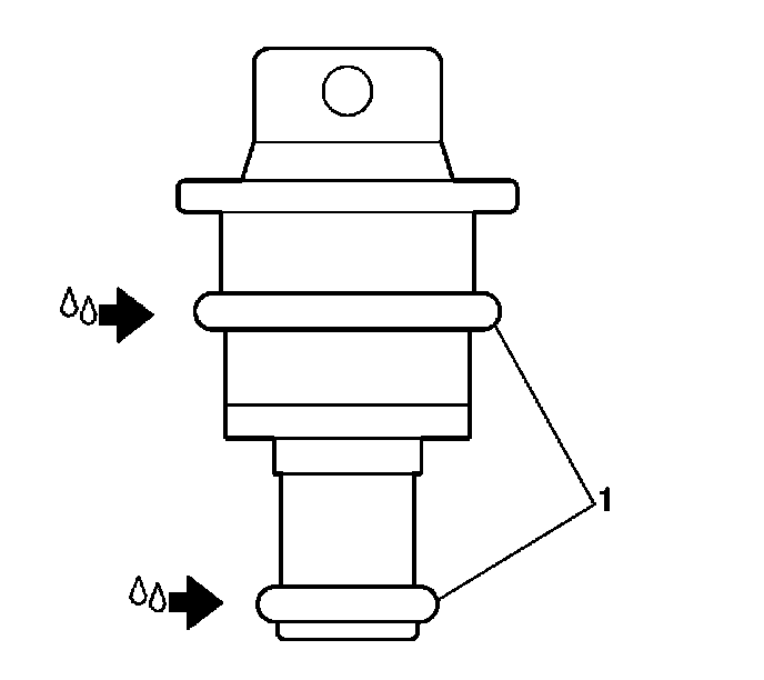 1. Apply gasoline to fuel pressure regulator O-rings (1).