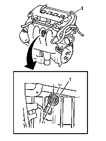 3. Align the KS (1) on the engine block as illustrated. The KS electrical connector cavity must point down, in a 15-30 degree arc from perpendicular to the earth.