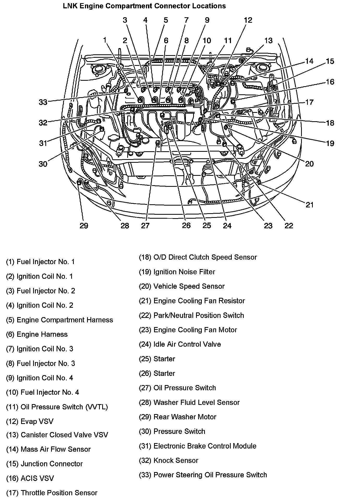 Engine Compartment Connector Locations: