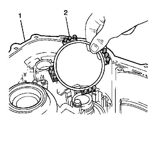 9. Remove the underdrive brake piston return spring (2) from the transaxle case (1).