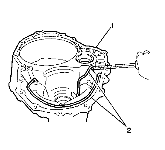 2. Remove the 2 fluid pipes (2) from the torque converter housing (1).
