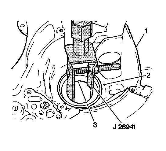 7. Use the J 26941 with a J 2619-01 in order to remove the following components from the torque converter housing (1):