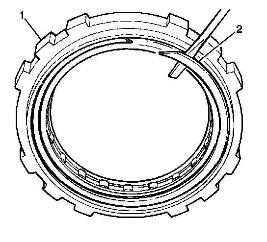 2. Remove the low one-way clutch snap rings (2) from both sides of the low one-way clutch outer race.