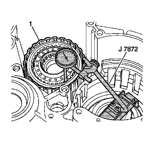 3. Use a J 7872 to measure the underdrive clutch (1) piston stroke before disassembly.