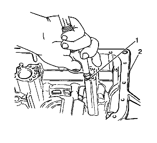 4. Apply 392 - 785 kPa (57 - 114 psi) of compressed air into the underdrive clutch apply passage (1) in the transaxle case and observe the J 7872