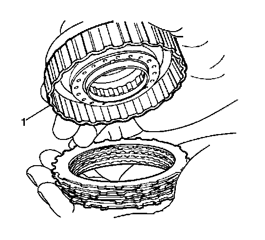 6. Install the 4 discs, 4 plates and underdrive clutch flange into the underdrive clutch drum (1) in the following order: