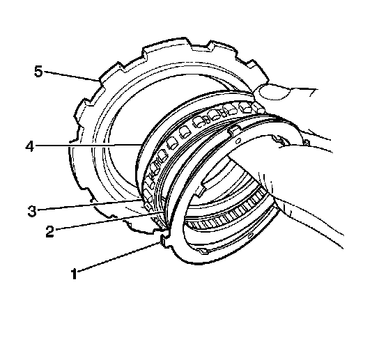 9. Install the underdrive one-way clutch sprag assembly (3) and retainers (2, 4) into the underdrive one-way clutch outer race (5).