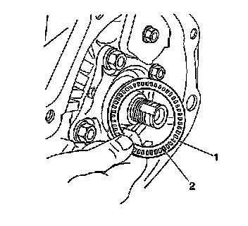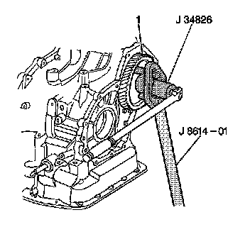1. Apply J 36850 to the underdrive sun gear inner thrust bearing (1).