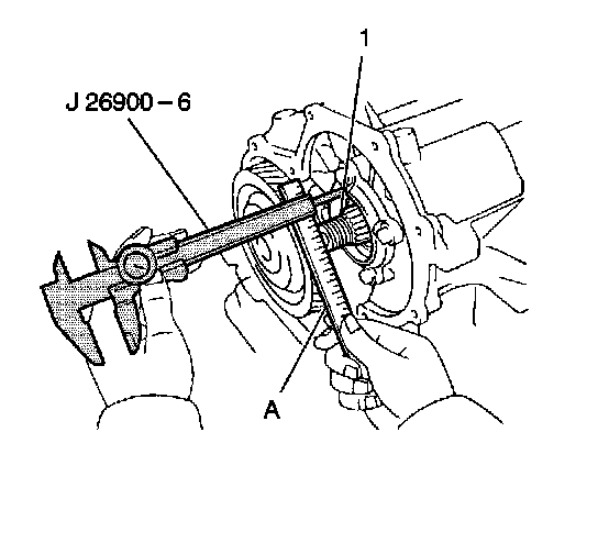 6. Measure the countershaft assembly (1) depth using a J 26900-6 and a straight edge (A).