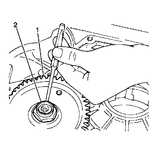 Install the countershaft driven gear locknut onto the countershaft driven gear (1) using a J 34826 with a J 8614-01.