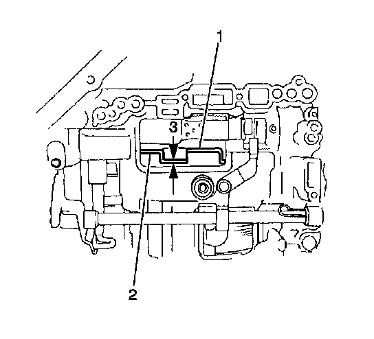 13. Verify that the gap between the direct clutch drum and the sun gear input drum (2) is approximately 3 mm (0.118 inch) (3).