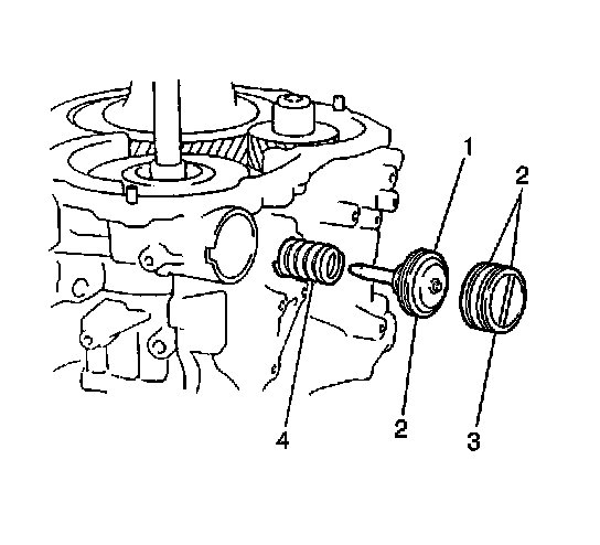 16. Install the 2nd coast brake outer return spring (4), the 2nd coast brake piston (1) and the 2nd coast brake servo cover (3) into the transaxle case.