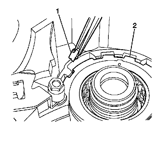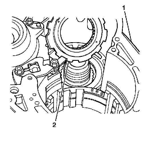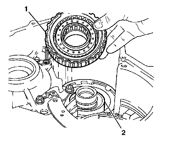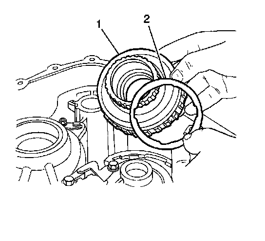1. Remove the underdrive clutch assembly (1) from the underdrive one-way clutch and the underdrive brake assembly (2).