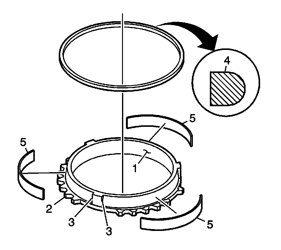 5. Inspect the blocker ring leaf springs (5) for wear.