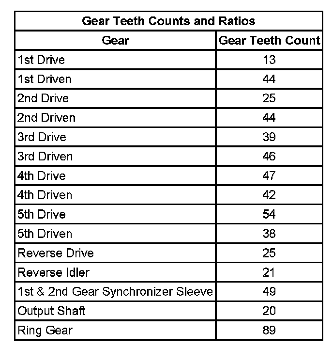 Gear Teeth Counts And Ratios: