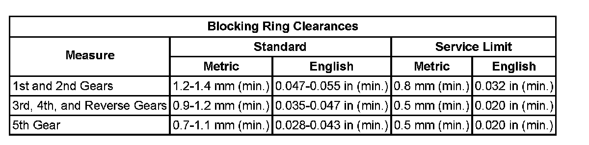 Blocking Ring Clearances: