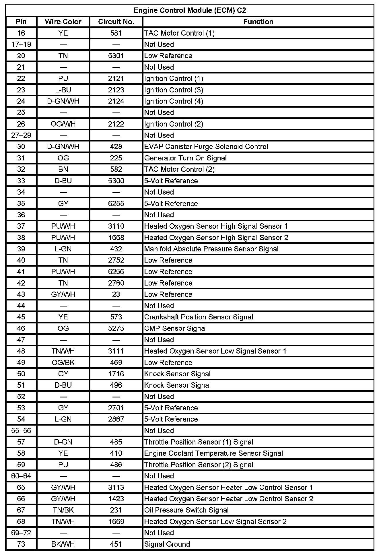 Engine Control Module (ECM) C2 (Pin 16 To Pin 73):