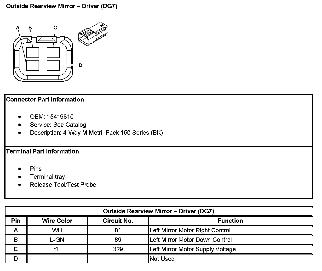Outside Rearview Mirror - Driver (With RPO Code DG7):