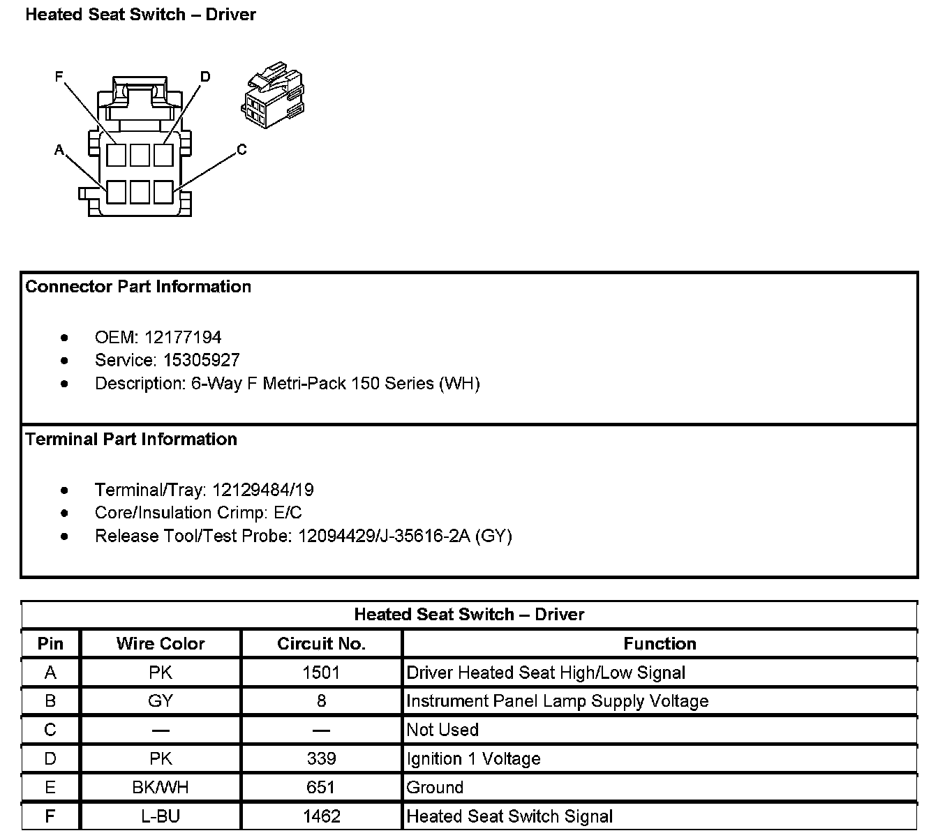 Heated Seat Switch - Driver: