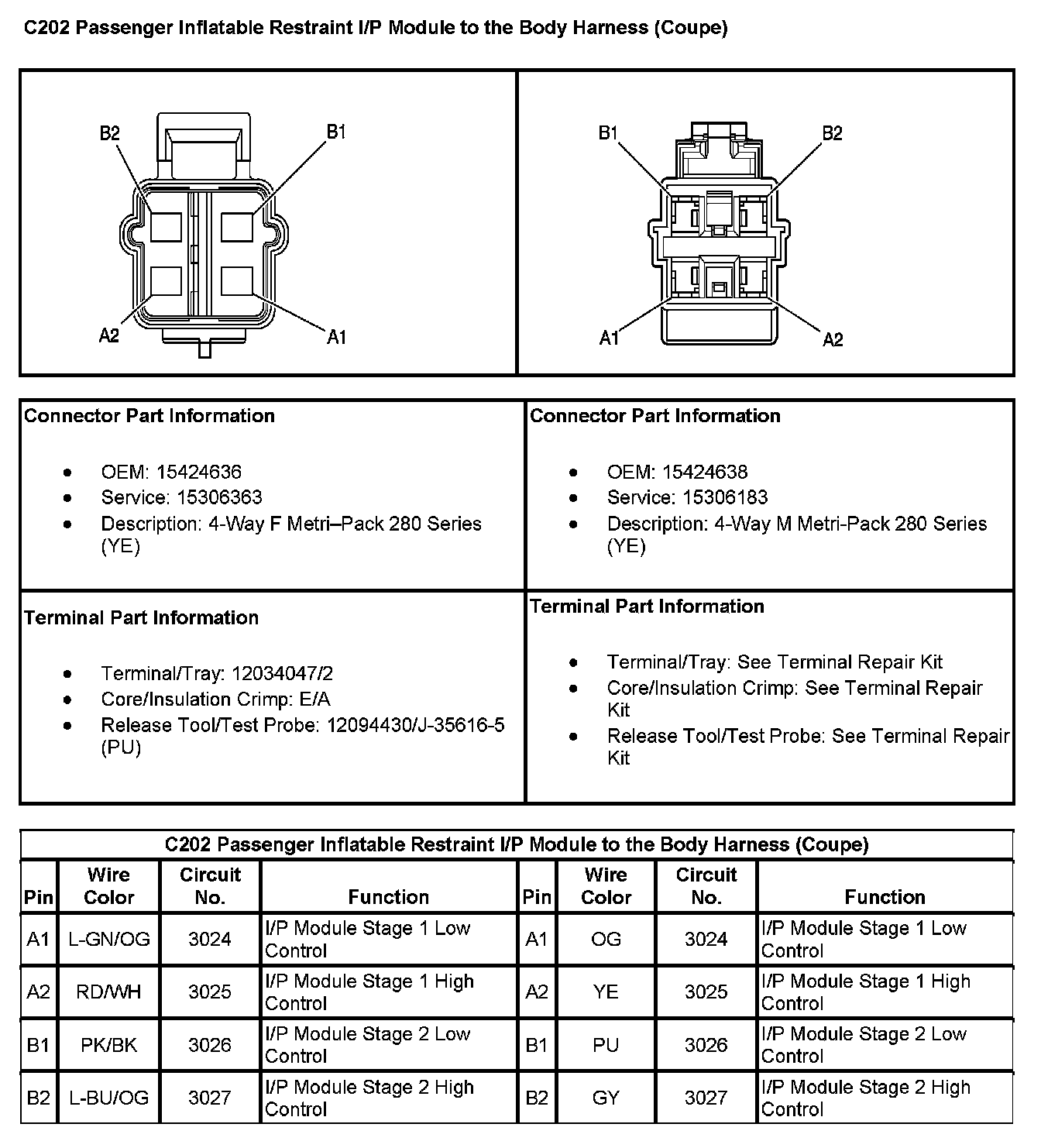 C202 Passenger Inflatable Restraint I/P Module To The Body Harness (Coupe) (Pin A1 To B2):