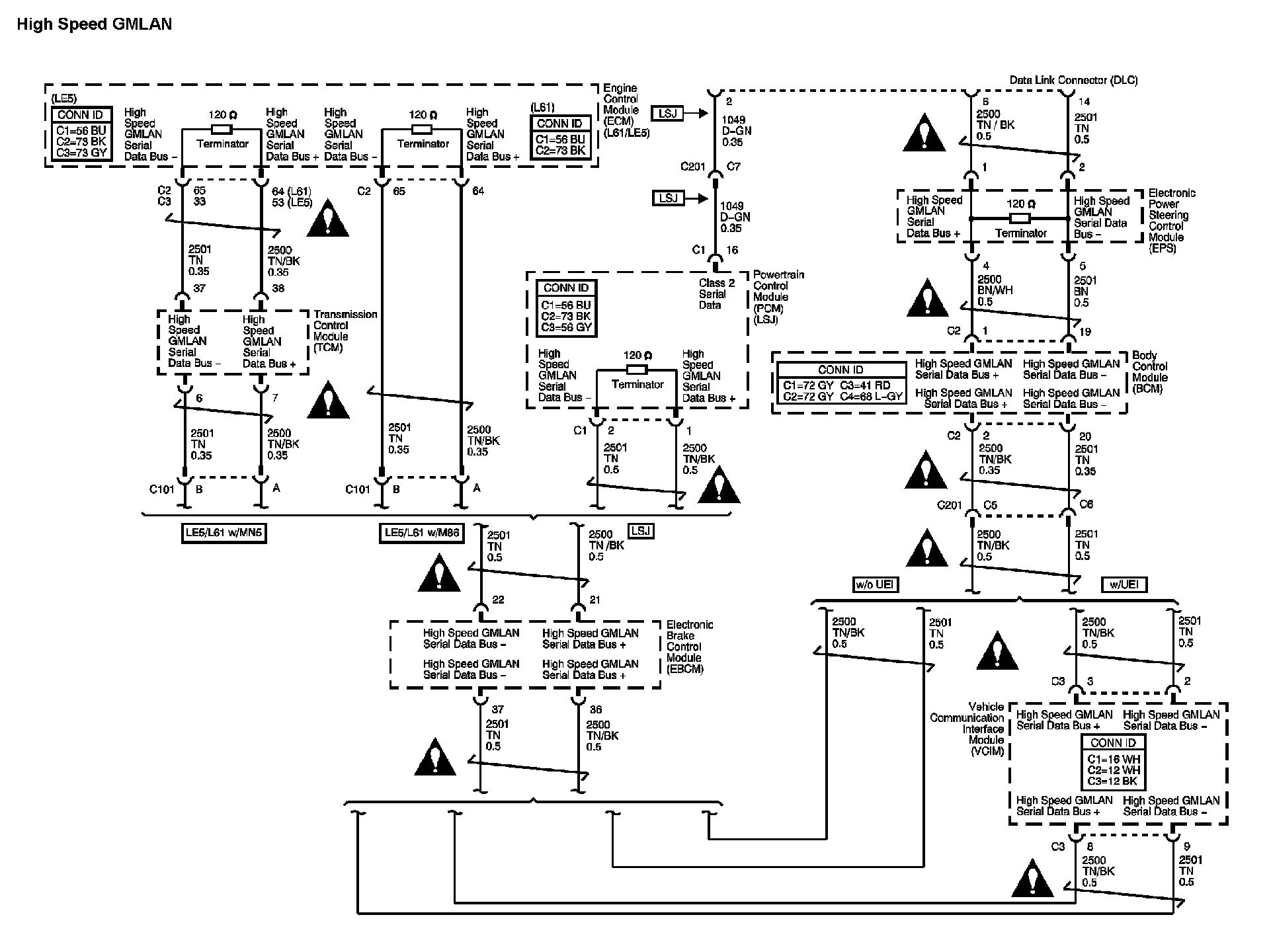 The locations for the Connectors, Grounds, Splices, and Grommets shown within these diagrams can be found via their numbers at Vehicle Locations.