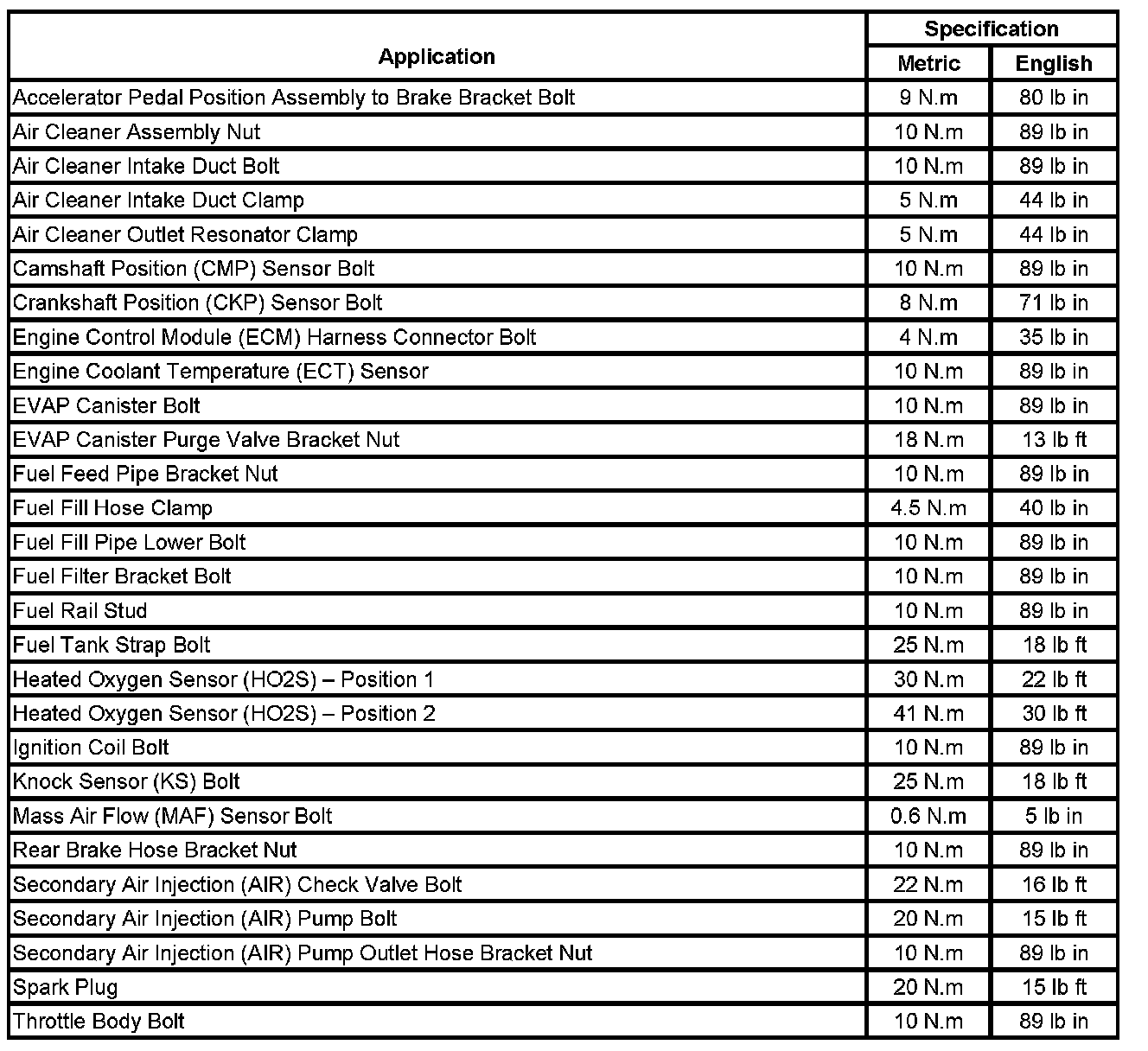 Fastener Tightening Specifications