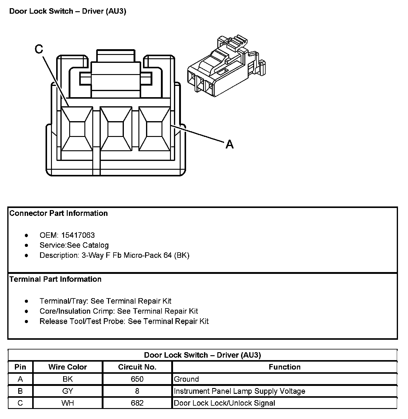 Door Lock Switch - Driver (With RPO Code AU3):