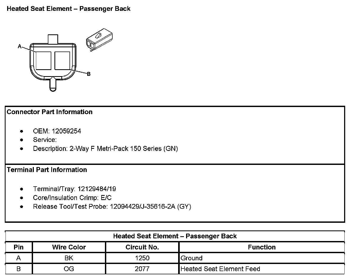 Heated Seat Element - Passenger Back: