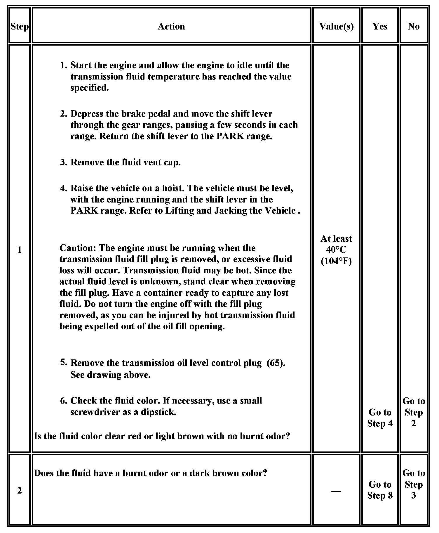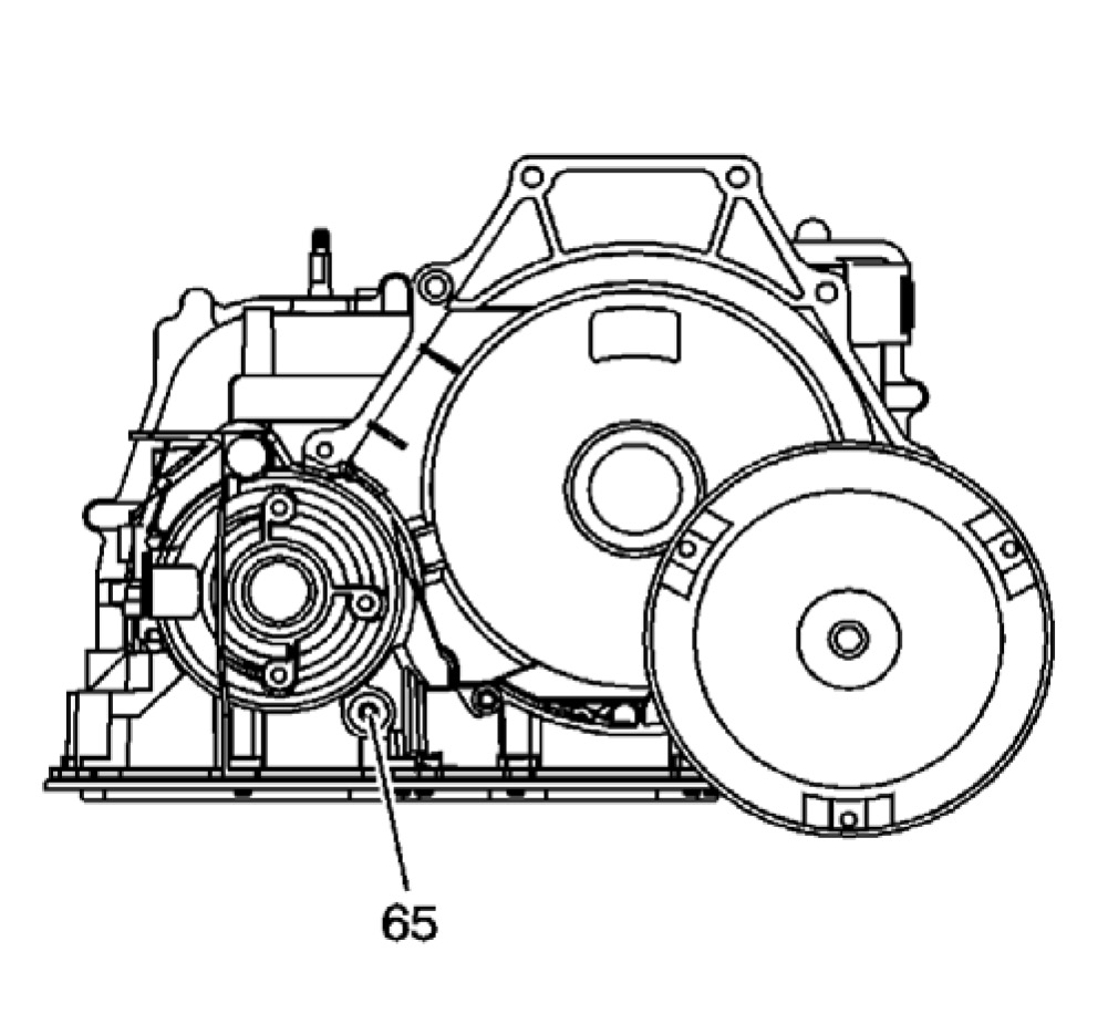 The oil level control plug (65) is located on the torque converter side of the transmission right hand axle seal passenger side.