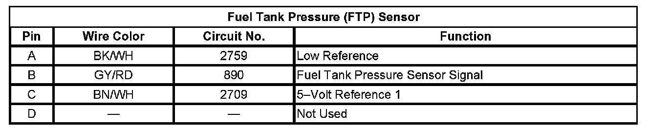 Fuel Tank Pressure Sensor: Diagrams