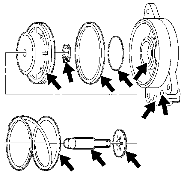 5. Discard the servo piston seals. Do not reuse the servo piston seals.
