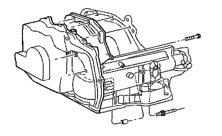 21. Remove the transmission cooler lines by removing the nut holding the bracket to the transaxle case.