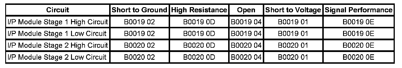 • If DTC B0019 or B0020 is history replace the I/P module.