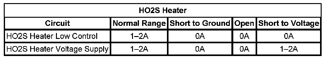 * The ECM detects that the HO2S 1 heater current parameter is more than 2.5 amps or less than 0.25 amp.