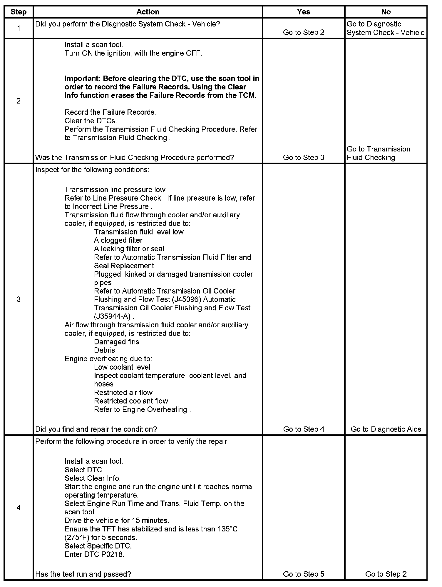 ^ The TCM stores DTC P0218 in TCM history.
