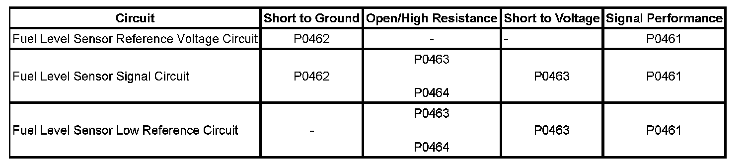 This diagnostic tests for an intermittent fuel level sensor signal. If a change in fuel level is detected, DTC P0442 is aborted due to a possible refueling event. If refueling is confirmed, the test for DTC P0464 is considered a pass. The refueling event test must pass 2 out of 3 times, otherwise, the DTC P0464 will set indicating an intermittent signal problem.