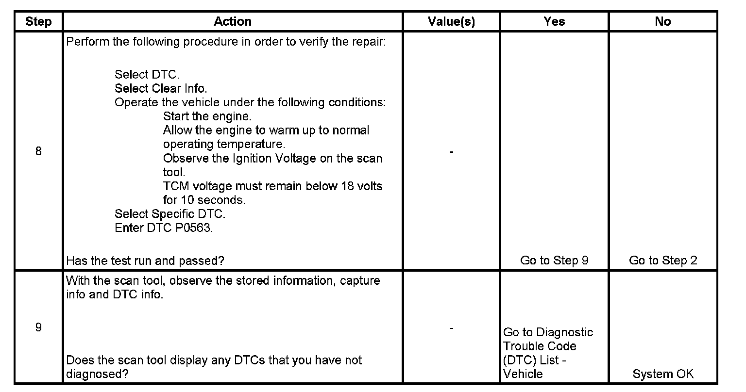^ The TCM stores DTC P0563 in TCM history.