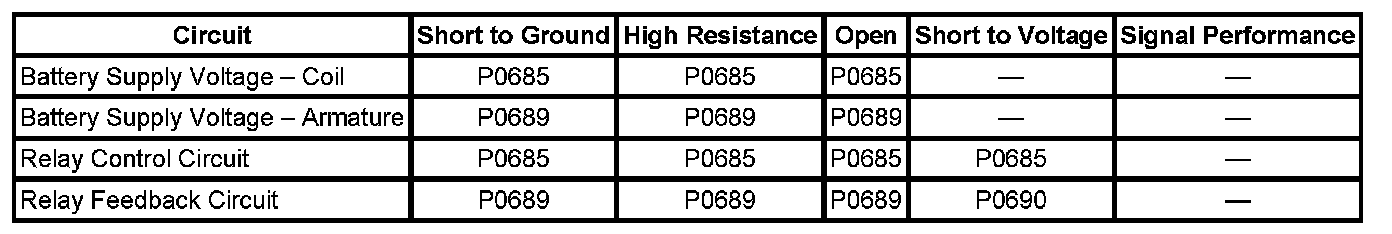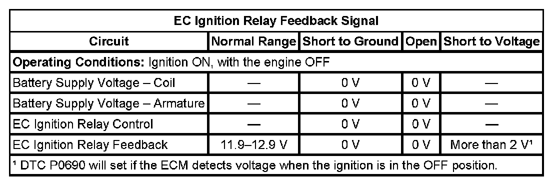 - Engine Controls Ignition Relay Feedback Circuit High Voltage