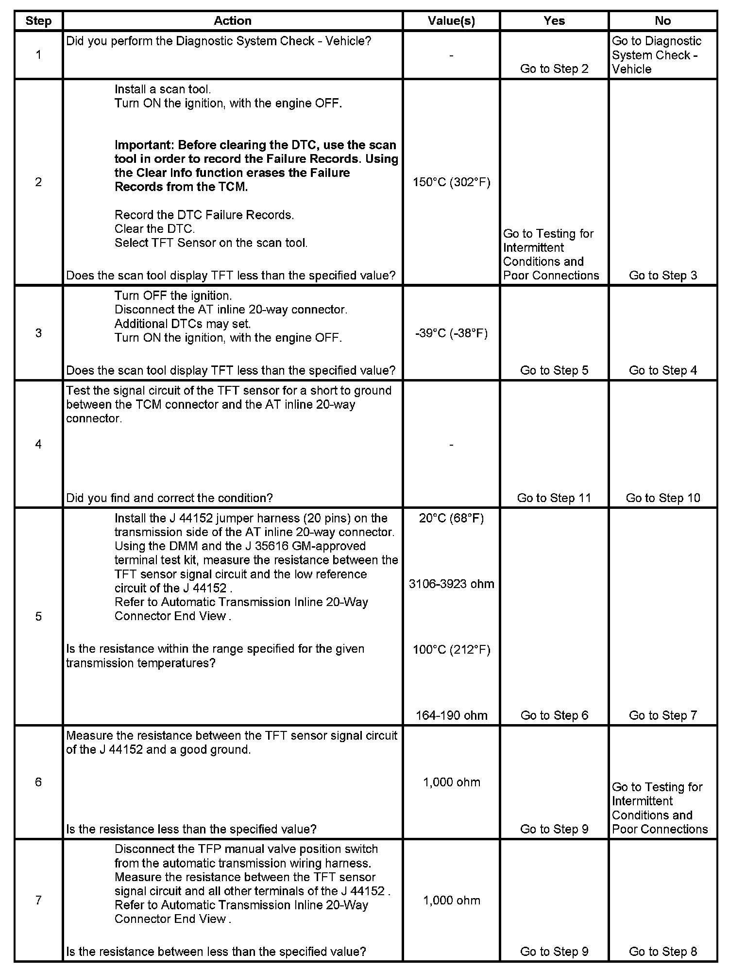 5. This step tests the TFT sensor for correct resistance.