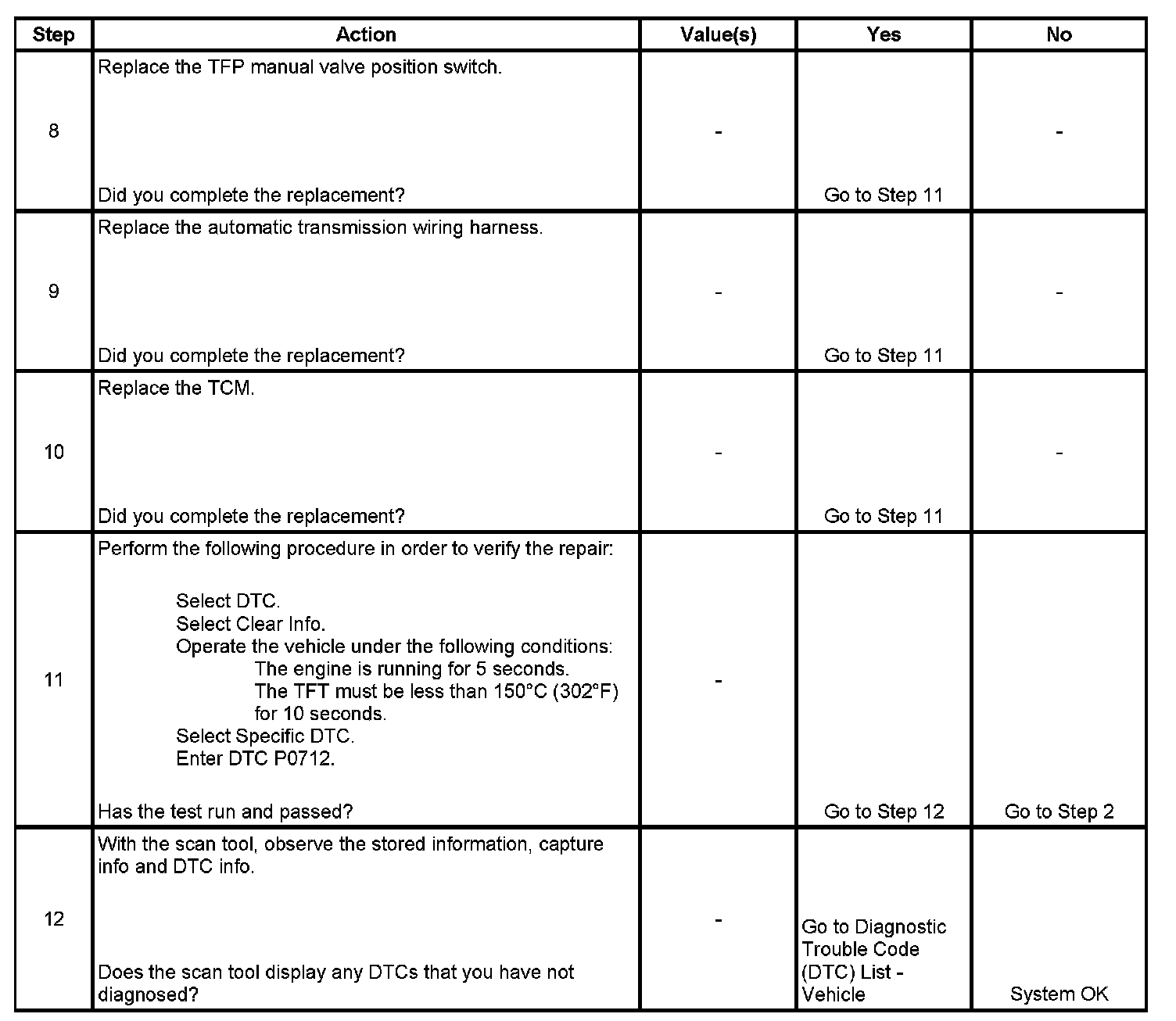 ^ The TCM stores DTC P0712 in TCM history.