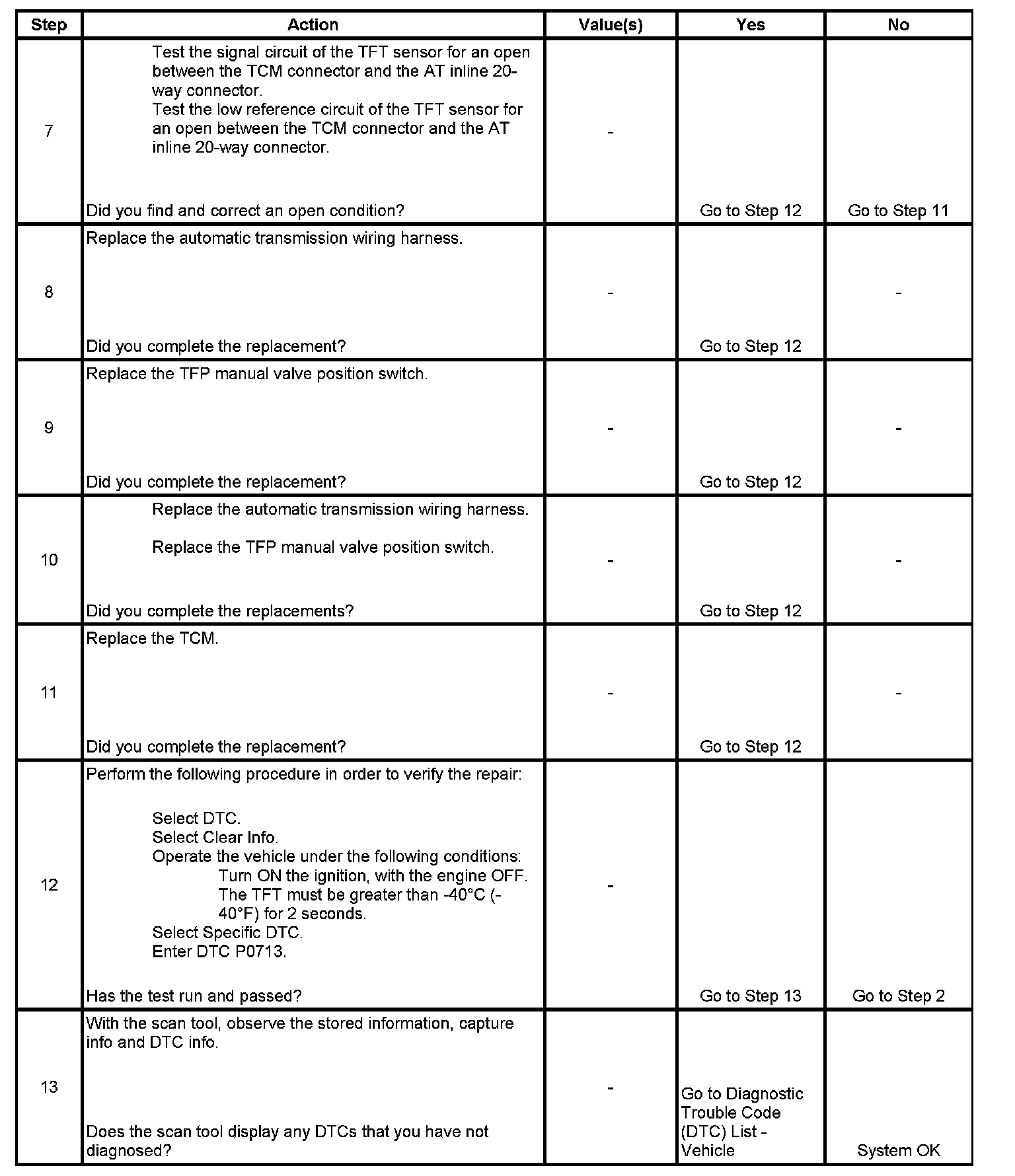 ^ The TCM stores DTC P0713 in TCM history.