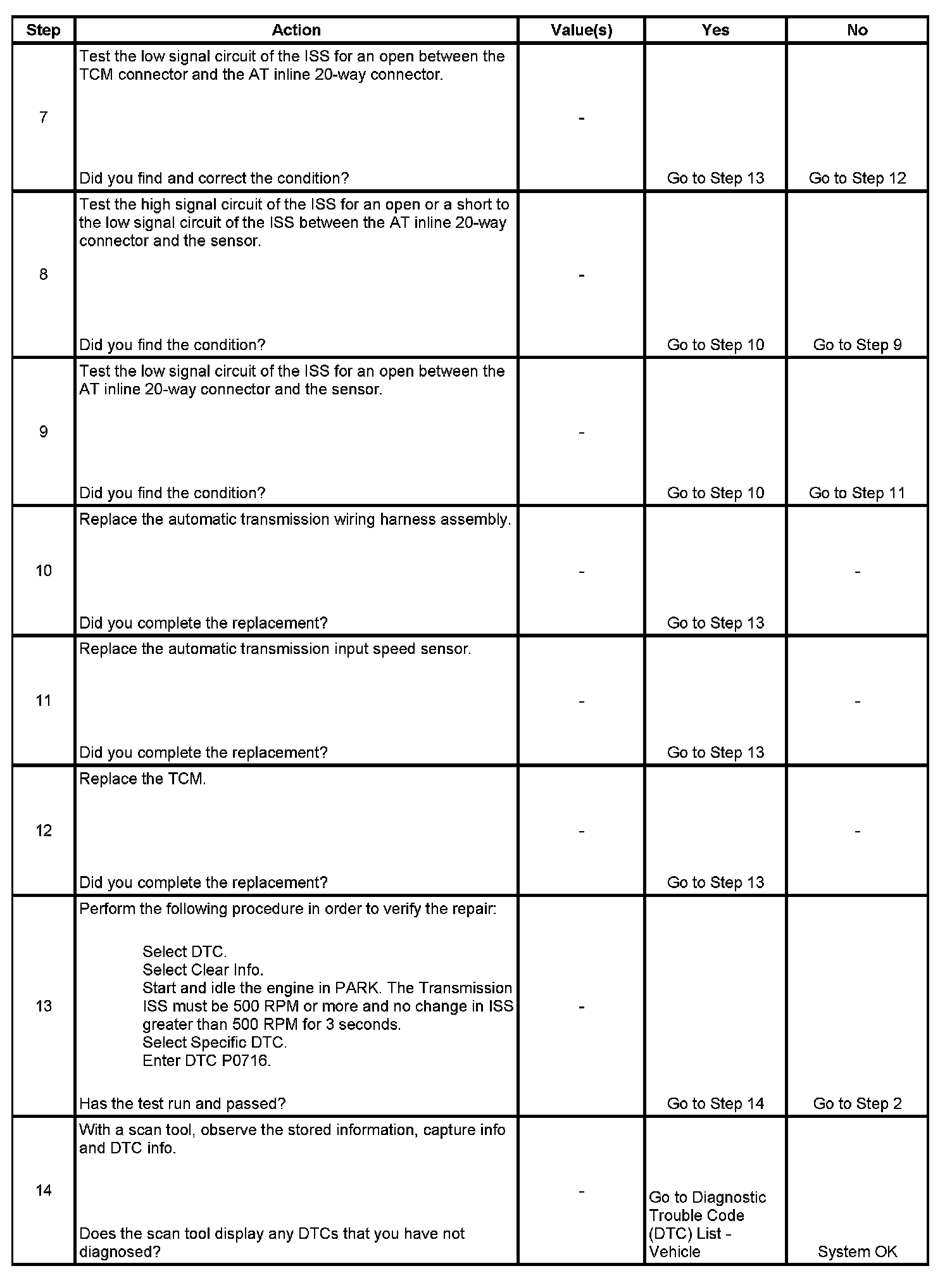 If the TCM detects an unrealistically large change in the ISS high signal in a short period of time, then DTC P0716 sets. DTC P0716 is a type B DTC.