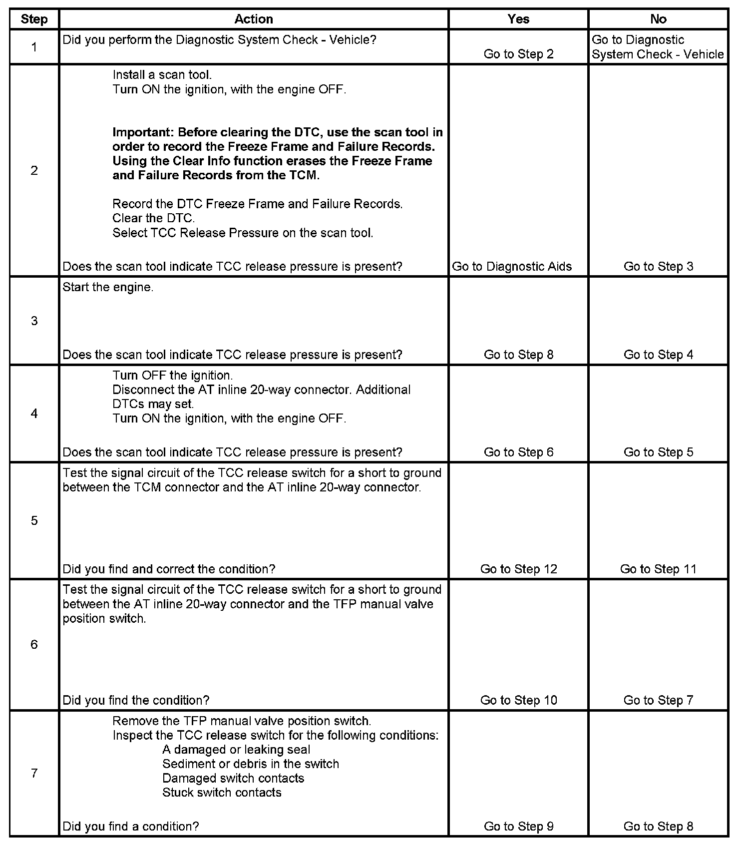 7. This step ensures that the TCC release switch is in good working condition.