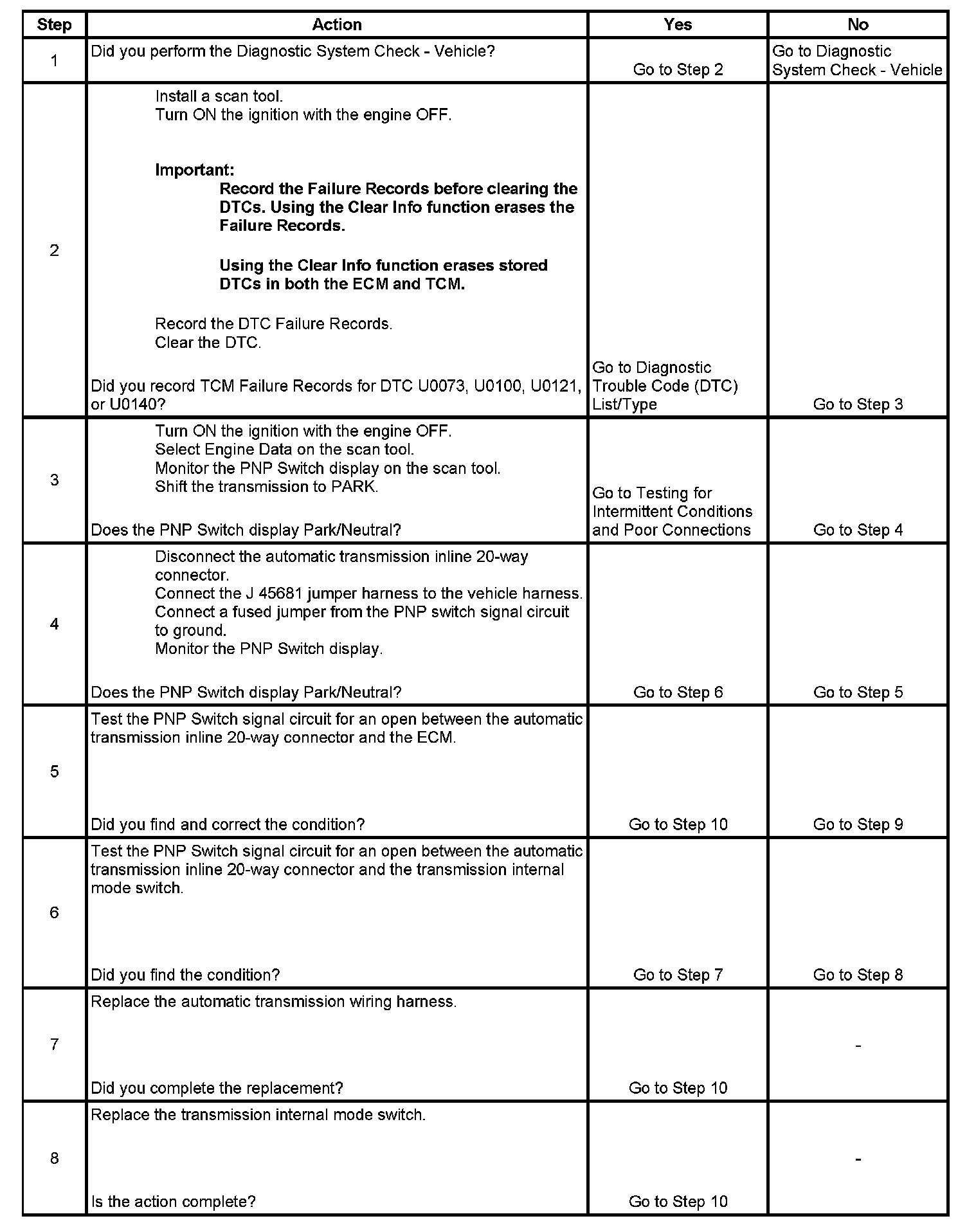 ^ No communication DTCs U0073, U0100, U0121 or U0140.